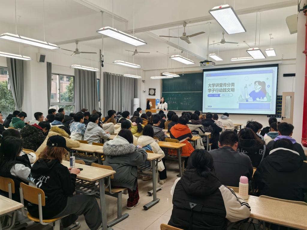 11 月 26 日下午,我校在长安校区基础教学楼 A120 教室举行“以师者行动,筑绿色校园”垃圾分类知识培训。本次培训由后勤管理处和学工部共同组织,长安区城市管理综合执法局垃圾分类服务中心专家团队讲授专业知识,各学院共计百余名学生参与培训。